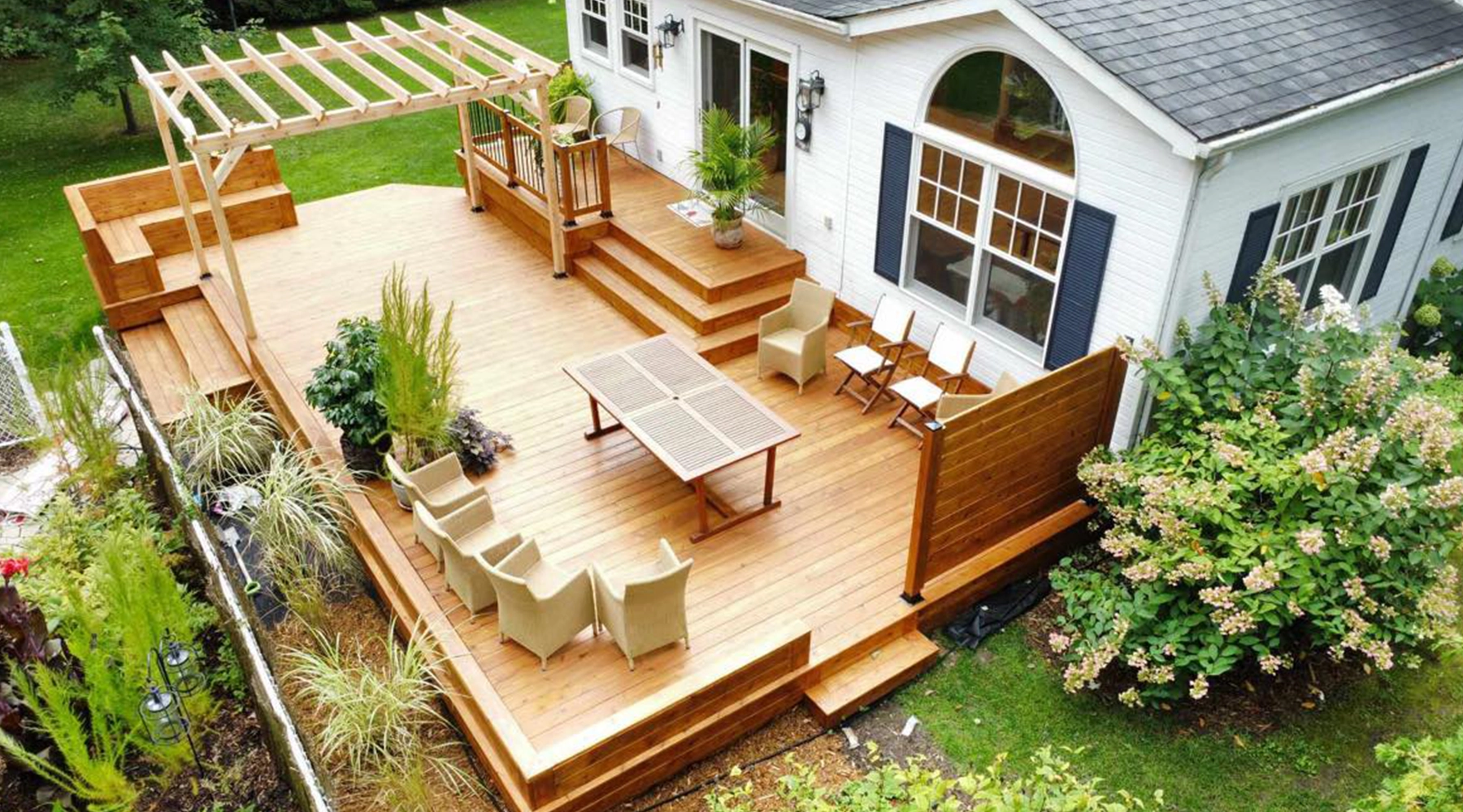 - Patio en cèdre à multiples paliers